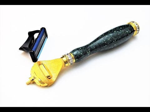 Зеленый агат и композитный камень используются для создания ручек бритвы, добавляя ей уникальный характер и текстуру. Кристаллы Swarovski, вставленные в металлическую основу бритвы, придают ей блистательное сияние и эксклюзивность.